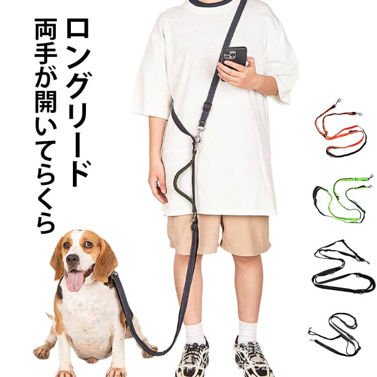 斜め掛けする 肩掛けリード ハンズフリーリード 多機能リード 散歩 ジョギング ランニング ハイキング