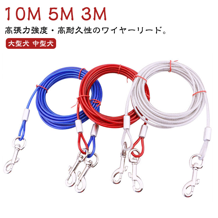 大型犬 ワイヤー入り 犬用リード ランナーケーブル ワイヤーリード ロングリード ステンレス リード 犬の散歩 中型犬 切れないリード 係留 錆びにくく 3 犬