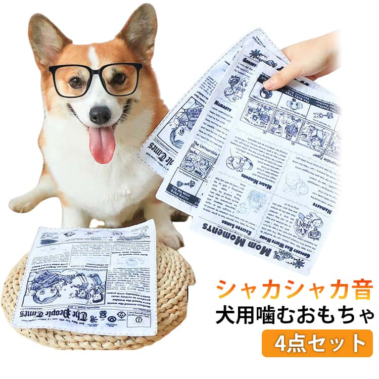 犬 噛むおもちゃ 新聞 4点セット 音が鳴る シャカシャカ 噛む 丈夫 知育玩具 ストレス解消 歯磨き 壊れない 清潔 水洗いOK いたずら防止 訓練 小型犬 中型犬 兼用 新聞紙 噛み耐性 大型犬