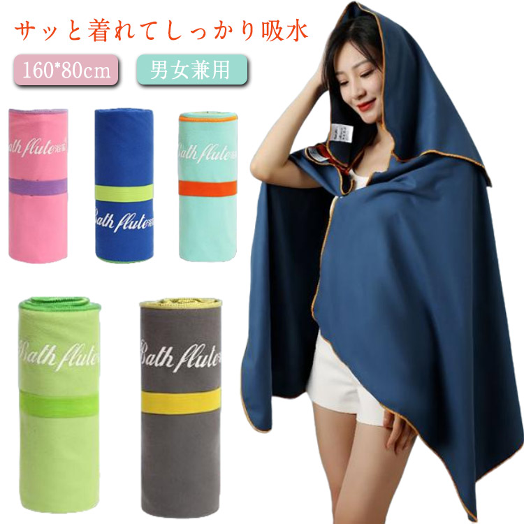 水遊び お風呂上りに レディース プールタオル ジム バスタオル 吸水性 巻きタオル メンズ バスローブ フード付き ビーチタオル 吸水速乾 エステ 80*160cm プール 海 プレゼント 大人用