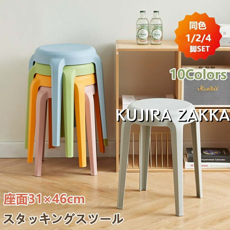 スタッキングチェア 高さ46cm スタッキングスツール 10色 屋台イス 椅子 スツール プラスチックスツール コンパクト キッチン ダイニング おしゃれ シンプル リビングルーム 2 ラウンドベンチ