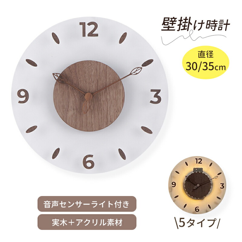音に反応して点灯、45秒後に自動で消える 木と光が描く、インテリアクロック時計 木目調 プレゼント 静音 音がしない おしゃれ オシャレ スタイリッシュ 1年保証