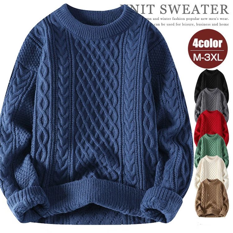 ケーブルニット メンズ セーター ニットセーター 長袖 フィッシ