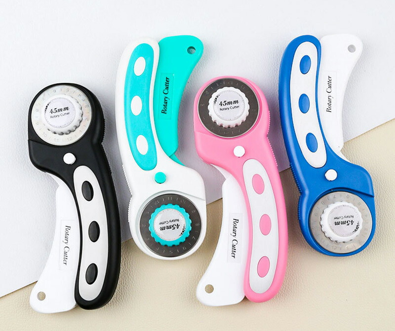 ロータリーカッター 人間工学に基づいたハンドル セーフティロック 布地ストリップカッター ローリングカッター 45ブレード ファブリック用 5個ブレード付き 生地裁断 縫製