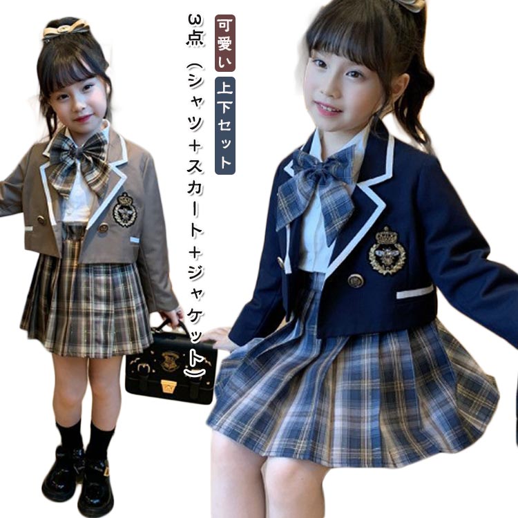 制服 子供 女の子 テーラードジャケット プリーツスカート 3点セット 小学生 学生服 上下セット 可愛い 女子 スクール 小学校制服 小学生制服 通学 フォーマル コスプレ 衣装 仮 学園祭