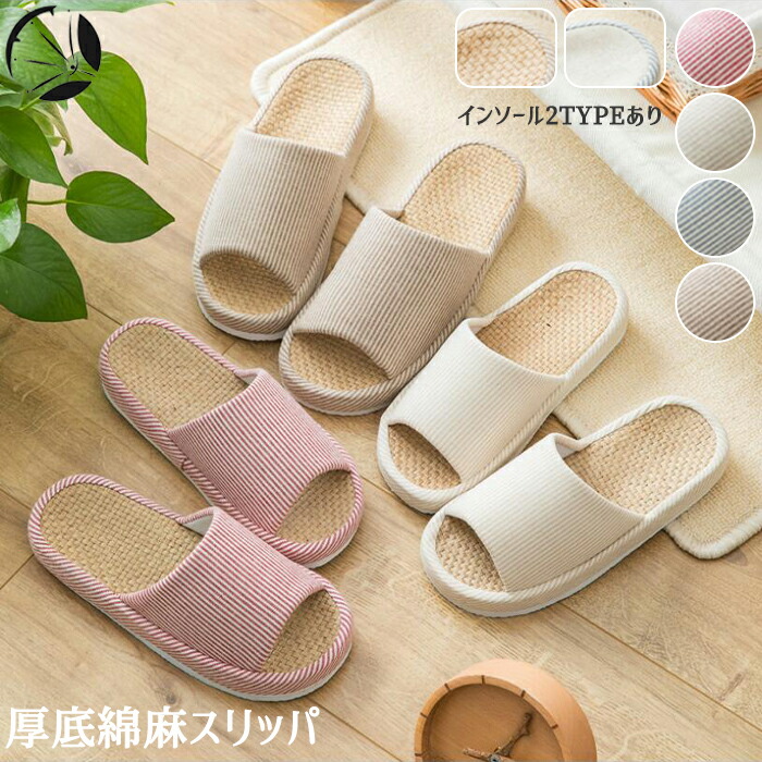 綿麻 厚底 リネン スリッパ レディース つっかけ リボン 春 夏 秋 冬 柔らかい カップル かわいい おしゃれ 吸湿 静音 通気 室内履き オフィス ルームシューズ 快 上履き