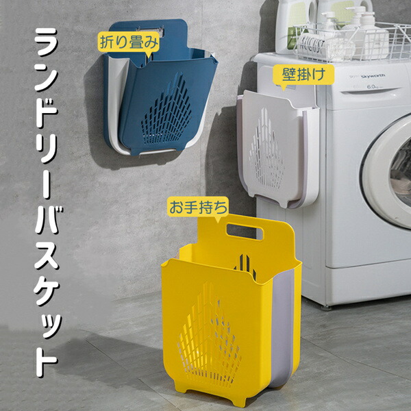 ランドリーバスケット 洗濯カゴ 折りたたみ 大容量 持ち手付き 壁掛け 穴あけ不要 持ち運び便利 おしゃれ 洗濯物入れ 洗濯機横 収納カゴ 収納 洗面所 収納便利 カゴ 洗濯 生活雑貨 省スペース
