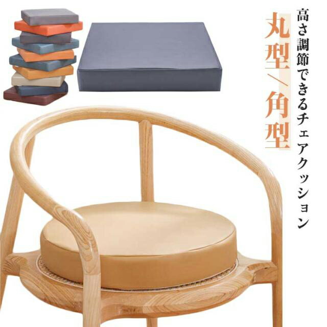 PU 高さ調節 蒸れない 椅子クッション クッション レザー お食事クッション 座布団 椅子 チェア 撥水 キッズチェア ベビーチェア お子様用 シンプル 無地 滑り止め 角型 丸型
