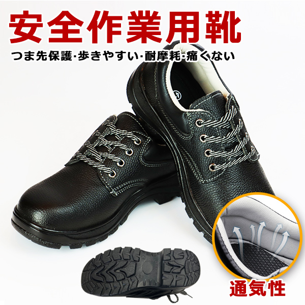 安全靴 作業靴 メンズ 男女兼用 釘踏み抜き防止 衝撃吸収 耐滑ソール つま先保護 軽量 通気性 工事現場 cm 4E ブラック 28.5