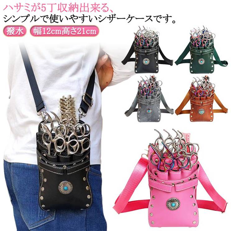美容師 腰掛け トリマー スリム シザーケース 5丁収納 本革シザーケース 肩掛け 本革シザーケース フラワーショップ 花屋 調整 ベルト 防水シザーケース