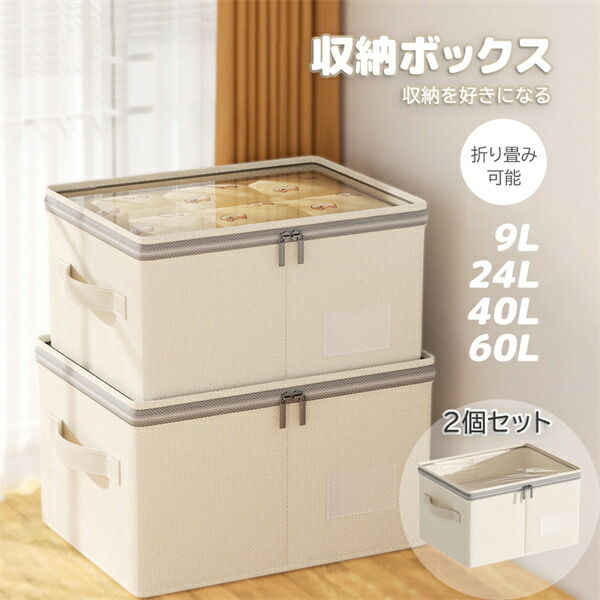 2個セット 省スペース 大容量 収納ボックス 折りたたみ可能 衣類収納 収納ケース ボックス 衣類収納袋 布 布製 窓付き フタ付き
