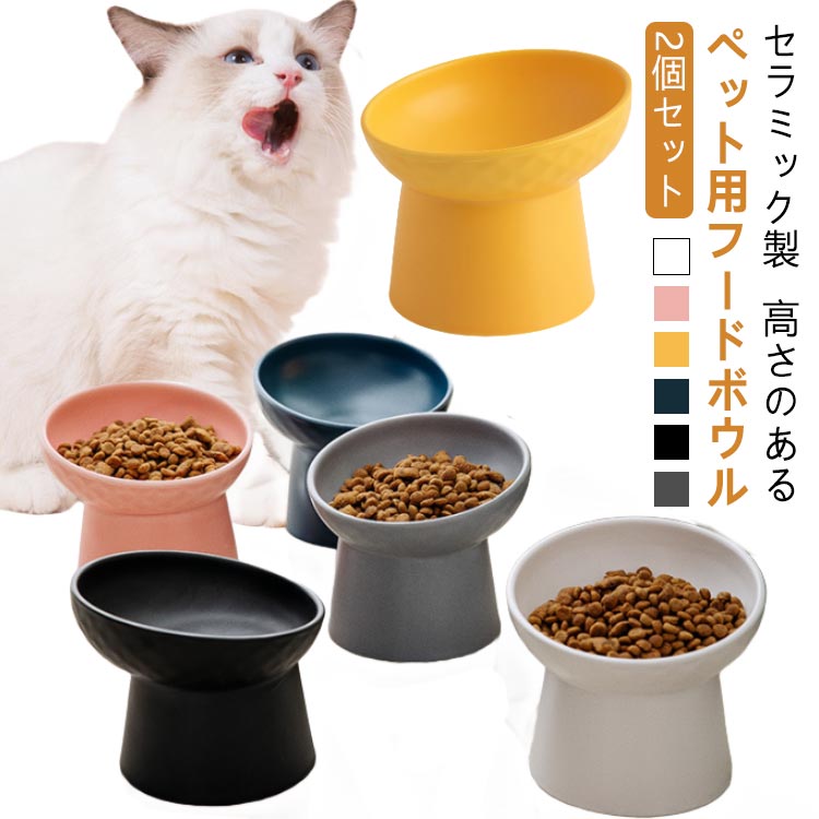 2個セット 猫 食器 ひげが当たらない フードボウル 斜め ペット食器 陶器 犬 多頭 ねこ ネコ 食べやすい 高さがある ごはん 餌皿 おしゃれ 餌入れ エサ入れ ご飯皿 水飲み器 水入れ 傾斜 器