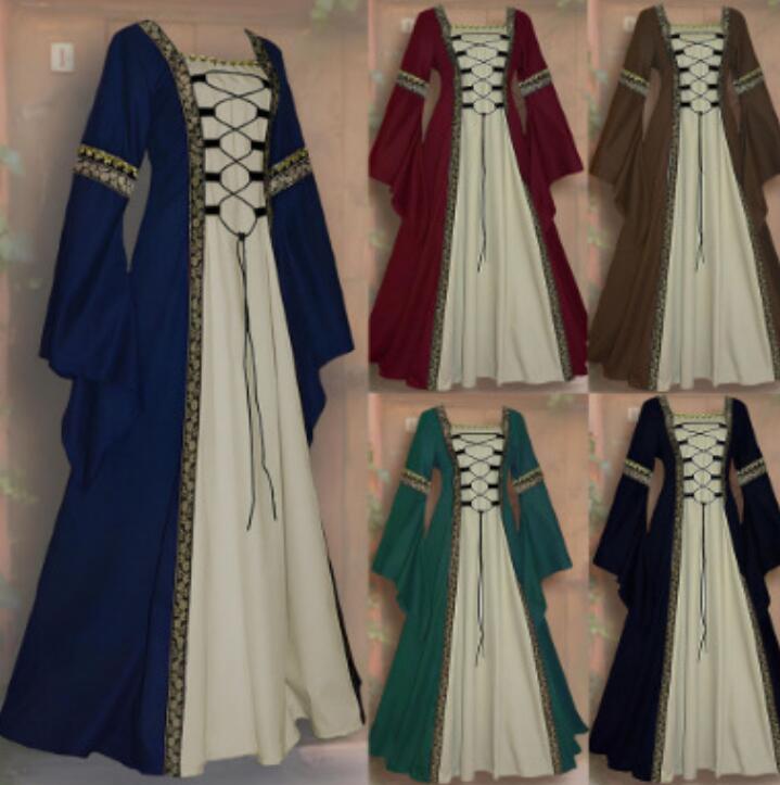 ハロウィンワンピース 中世 ヨーロッパ風 レディース ロング コスプレ 女性 ヨーロッパ中世 古着 復古 復古風 西洋 民族衣装 貴族 中世紀 巫女 魔法 イベント 演出服 宮廷装コスチューム