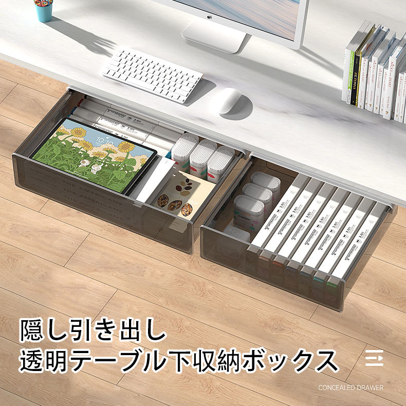 卓下引き出し式収納ボックス 大容量 オフィス収納 テーブル底隠し収納ボックス 引き出し収納ボックス 多機能収納 文房具収納 事務用品収納 ノート収納 スペースを取らない 使い勝手がよい
