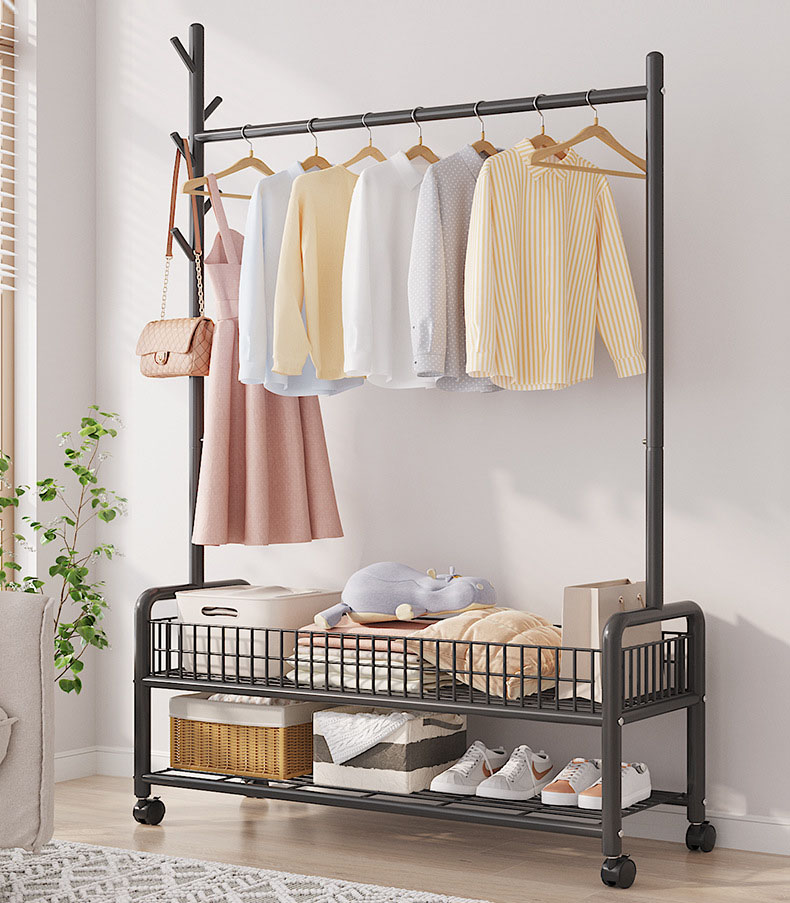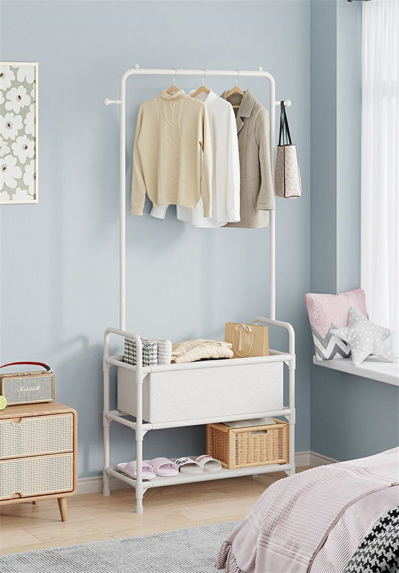 シンプルで便利な衣帽掛け+2段収納バスケット ? 収納力抜群の万能アイテム