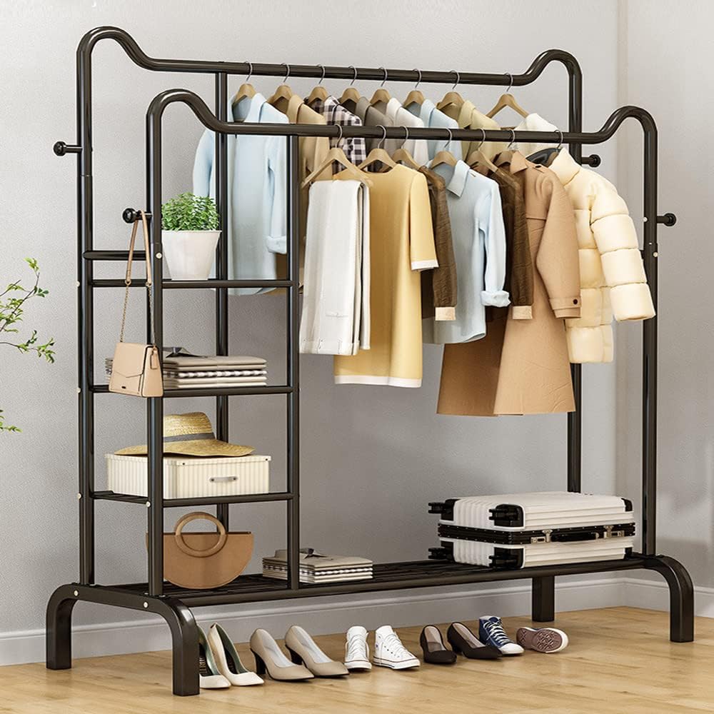 パイプハンガーラック 頑丈 ダブル スリム 衣類ラック おしゃれ 2段 洋服掛けるラック 床置き型物干しラック 便利な収納 大容量収納 シャツ ワンピース コート 丈夫 据え置き式 安定 省スペ 耐用