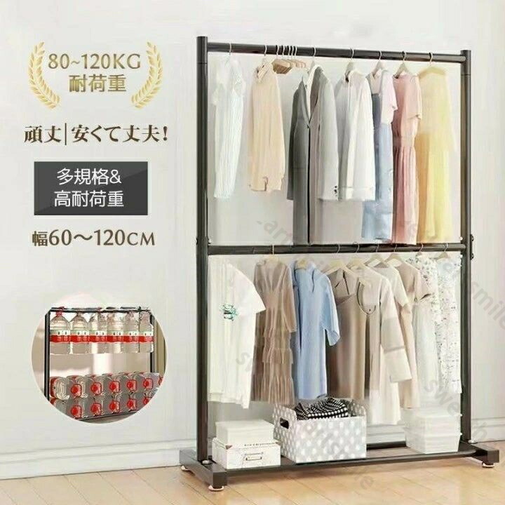 ハンガーラック 幅60-120 2段 衣類収納 高耐荷重 大容量