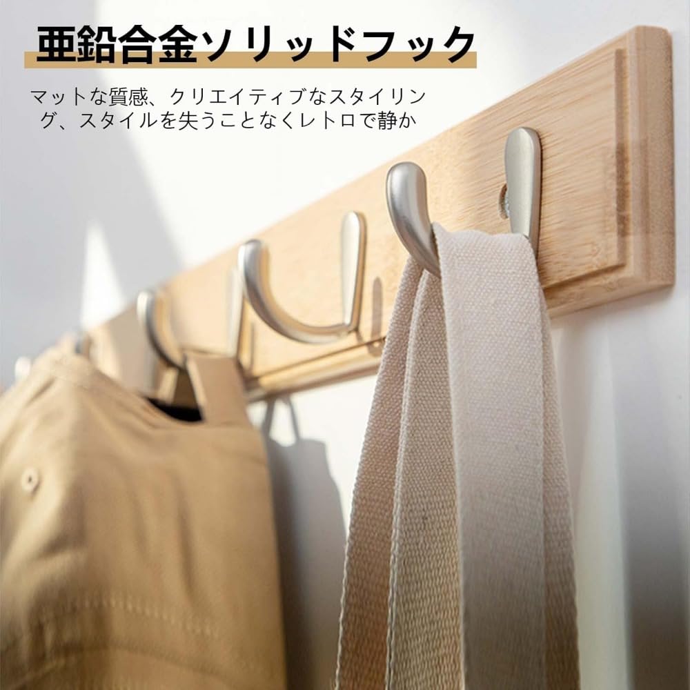 ウォールハンガー 壁掛けフック 4-8連フック 天然竹製 ハンガーフック ウォール 整理整頓 壁取り付け式コートラック 物干しハンガー 帽子掛け 洋服掛け 省スペース 高耐荷重 コート 壁掛けハンガー