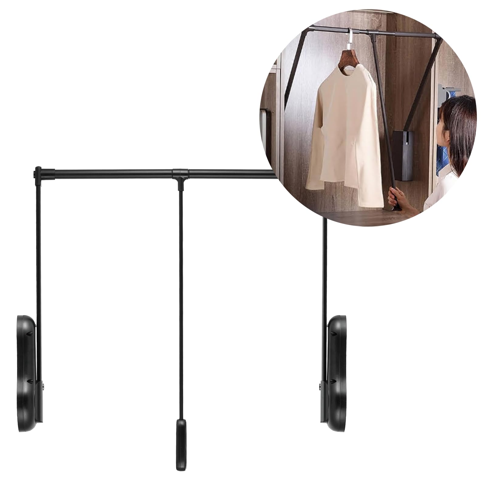 ポールハンガー ワードローブリフト ワードローブレール プルダウンクローゼットロッド 引き出し式パンツラック リフトハンガー 850-1200mm耐荷重30kg アルミ合金 調節可能650-850mm