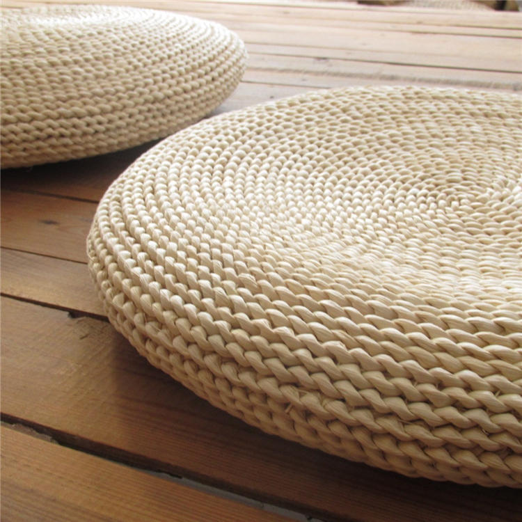 真綿充填 座禅を組む 藤編 草編 フロアクッション 座布団 おしゃれ クッション ラウンドクッション 大きい インテリア 円形クッション 蒲団 丸型 畳 和室 ギャザー チェアクッシ 丸座布団