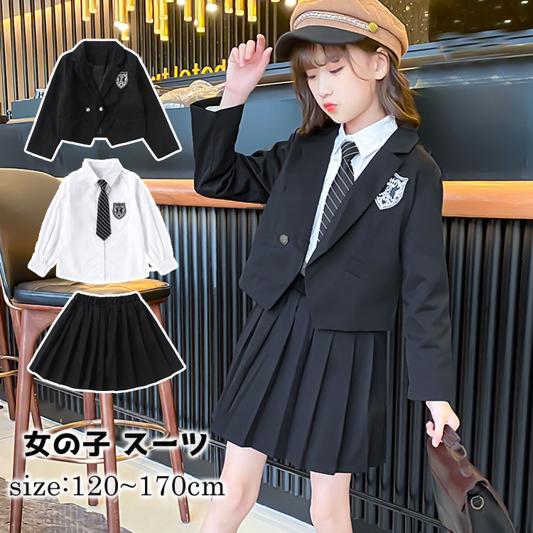 卒業式 スーツ 女の子 大きいサイズ 卒服 韓国 制服 ブレザー フォーマル ピアノ発表会 高校生 入学式 子供スーツ 4点セット 2点セット ジャケット 白 ブラウス 子供服