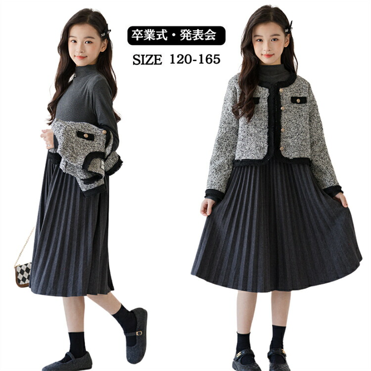 卒業式 ワンピース 小学生 卒服 女の子 スーツ ツイード ジャケット 160 165cm 小学校卒業式 2点セット 春秋冬 小学校女子 入学式 フォーマル ジュニアスーツ 中学生