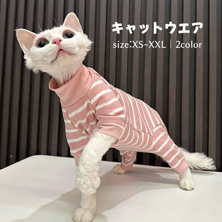 スフィンクス猫 キャットウェア 猫服 長袖 柔らかい 肌着 ストライプ セーター 春夏秋 つなぎ ルームウェア コーニッシュレックス デボンレックス ピーターボールド コニス無毛の猫