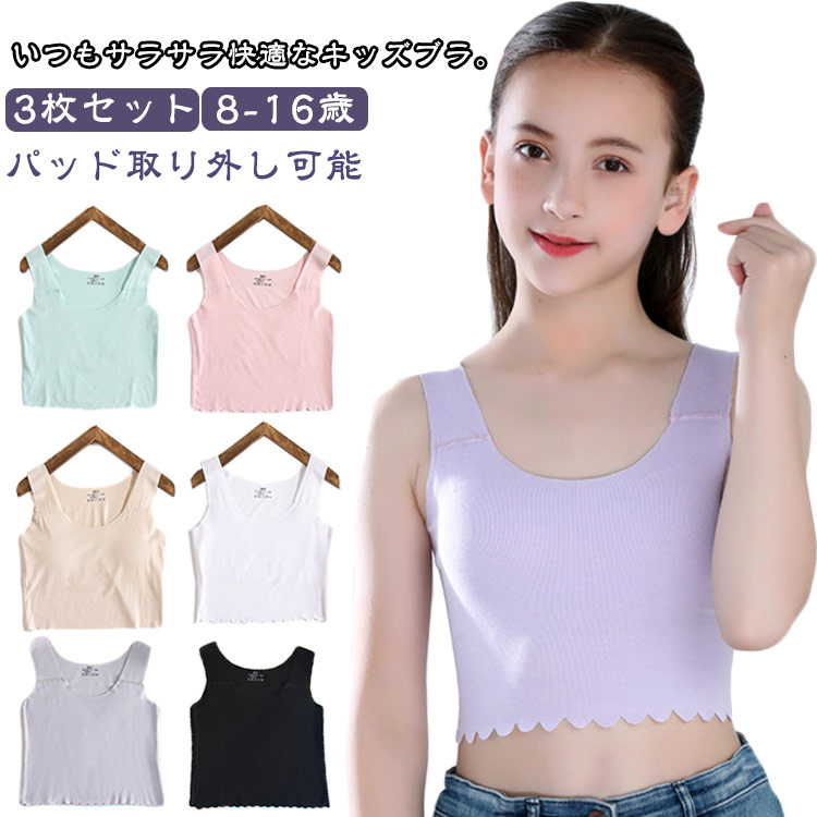ジュニア ブラ ガールズ 子供用 タンクトップ ブラジャー 3枚セット 小学生 女の子 インナー 綿 ノンワイヤー