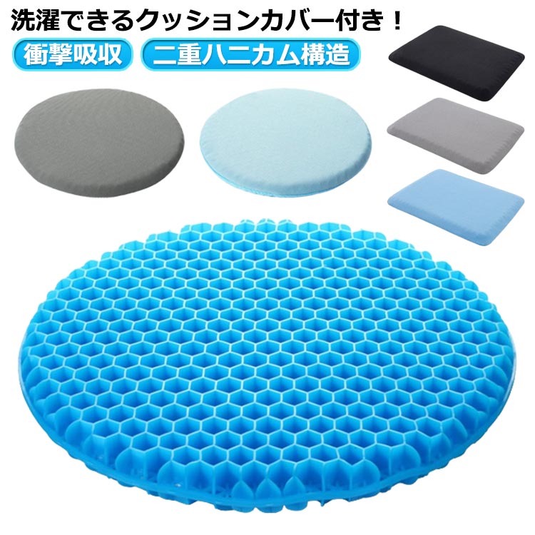座布団 ジェルクッション ゲルクッション ハニカム 二重 椅子用 クッション 回転椅子 丸椅子 無重力 テレワーク 骨盤矯正 体圧分散 二重ハニカム構造 シリコン 腰痛