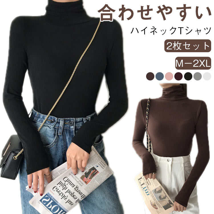2枚セット タートルネック レディース ヒートテック インナー Tシャツ 長袖 秋新作シンプル 無地 tシャツ カットソー トップス 母の日 春秋冬 重ね着 女性用 タートル おしゃ コーデ