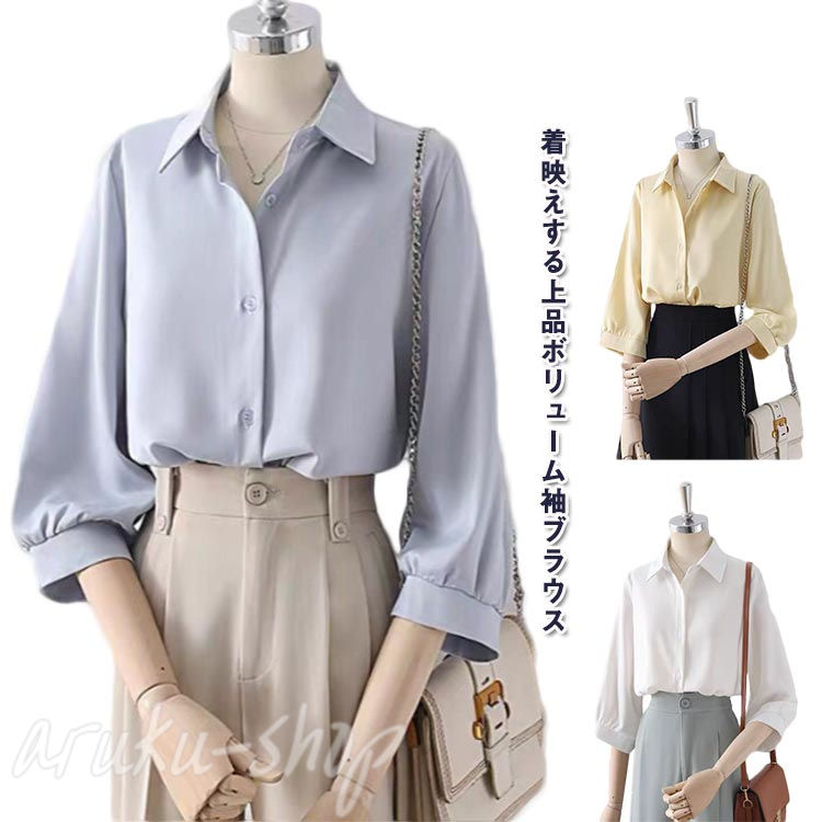 ブラウス 七分袖 レディース トップス シャツ 白ブラウス 白シャツ 7分袖 襟付き 衿 大きいサイズ ゆったり フロントボタン シワになりにくい 通勤 オフィス フェミニン カジュアル ブラ 事務服