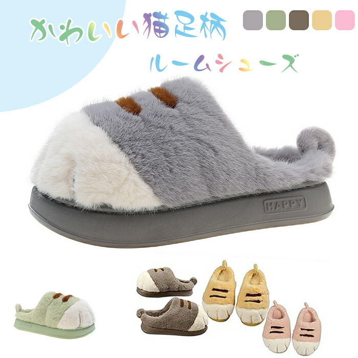 女性用猫足スリッパ かわいい面白い猫足スリッパ ルームシューズ 部屋室内履き ボアスリッパ ふわふわ 足冷え対策 グレー あったかスリッパ