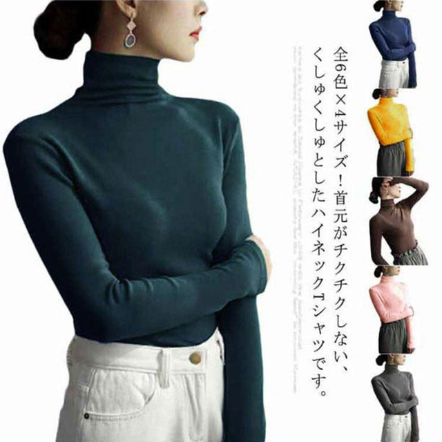 Tシャツ 全6色×4サイズ ティーシャツ 長袖 tシャツ タートルネック トップス 長袖tシャツ レディース ハイネック インナー 肌着 春 カットソー 無地 ストレッチ 大 冬
