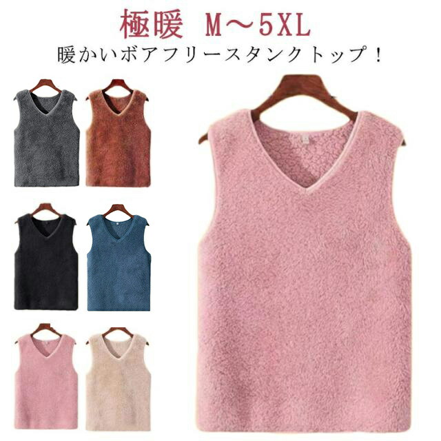 アンダーウェア ボアフリース ベスト レディース ノースリーブ 重ね着 もこもこ あったか 暖かい タンクトップ トップス インナー 防寒着 極暖 保温 通勤 厚手 大きいサイズ 無地 冷え Vネック