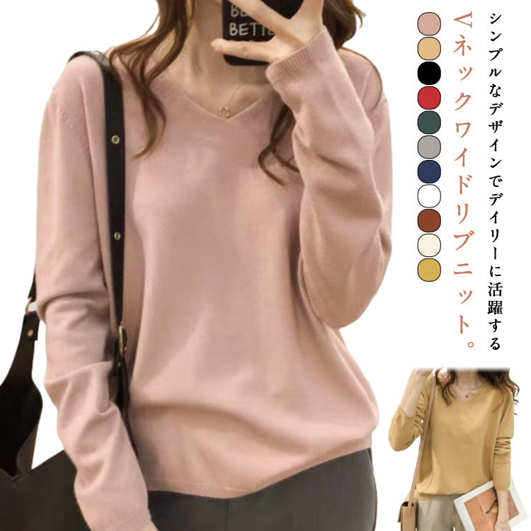 送料無料 ニット トップス ニットセーター 長袖 薄手 ゆったり レディース ネック プルオーバー 暖かい 春 秋 冬