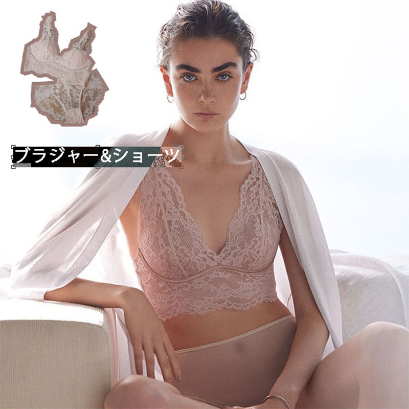 ノンワイヤーブラ セット ショーツセット かわいい ショーツ 脇高 ブラ 痛くない下着 補正下着 下着 レディース 小胸 ブラショーツセット 盛れる 育乳ブラ 育乳 脇肉 レース 谷間