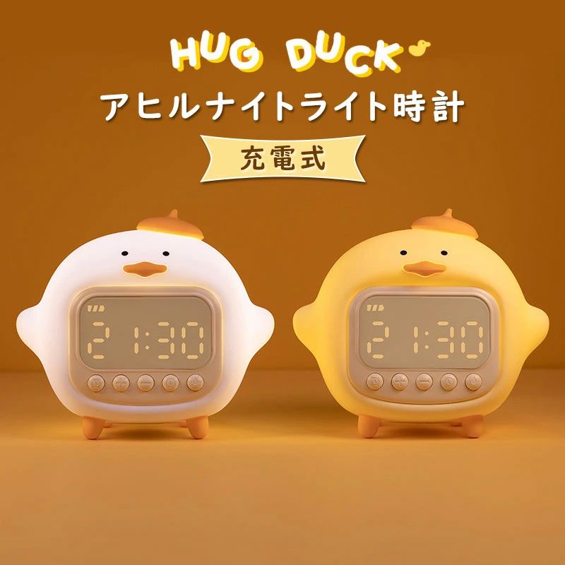 アヒル 目覚まし時計 子供 クリスマス プレゼント 男の子 女の子 小学生 保育園 デジタル時計 デジタル 授乳ライト かわいい 置き時計
