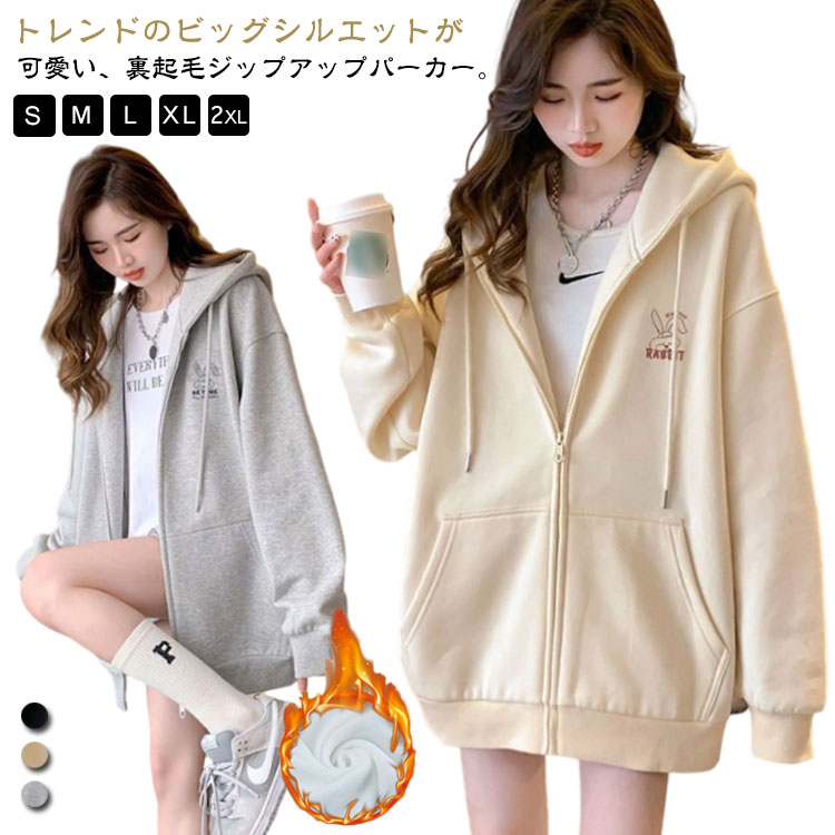 ジップパーカー レディース ジップアップパーカー ライトアウター ビッグシルエット アウター パーカー 裏起毛 オーバーサイズ 体型カバー カジュアル おしゃれ 通学 長袖 トッ 通勤