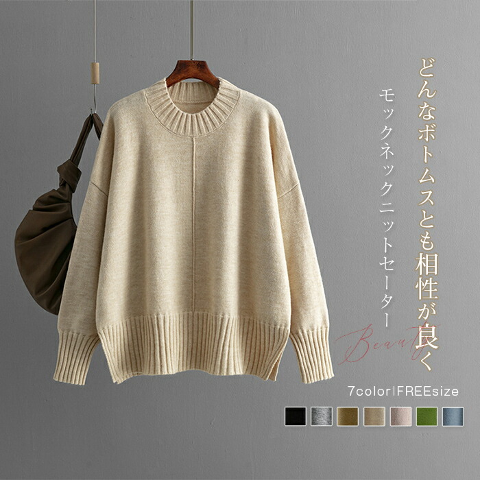 ニット レディース モックネック セーター ニットセーター 秋冬 シンプル 無地 プルオーバー トップス 秋 冬 春 センターシーム 裾スリット 通学 通勤 体型カバー 長袖 大人 オフィス