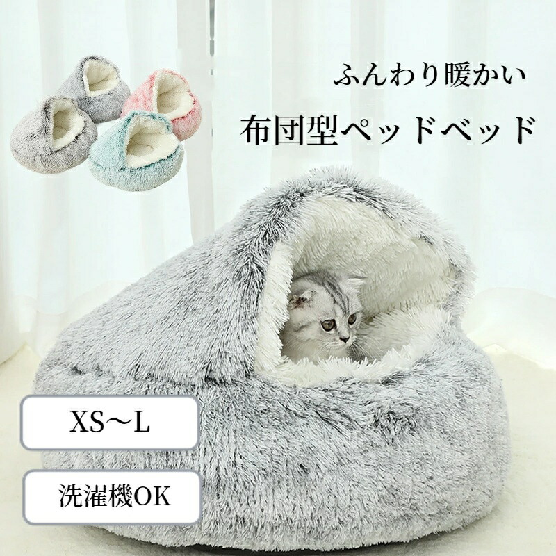 ペットベッド 布団型 かわいい S M L XL 洗える 猫 小型犬 秋冬 暖かい ふわふわ 柔らかい シャギー 寝袋 布団 キャットハウス 室内 ペットクッション ペットマット カ ドーム型猫ベッド