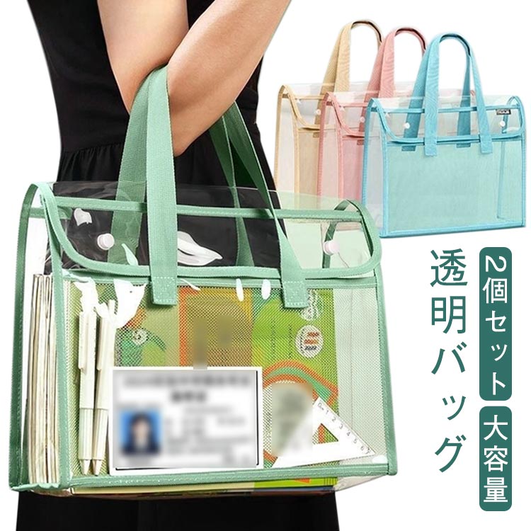 イベント 透明バッグ ファイルバッグ 防水カバー 2枚セット 大容量 学生用 防水 A4サイズ クリアバッグ 耐久 鞄 教材整理 バッグ 厚手 整理 女性用 かばん 試験 推 収納