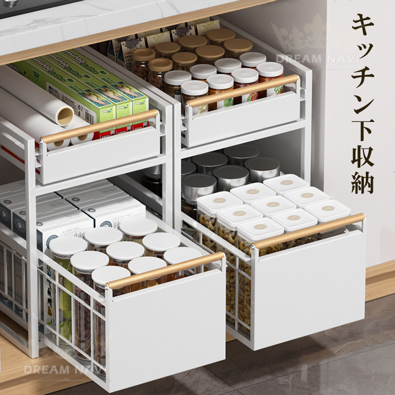 キッチン下収納 シンク下 スライド収納 スムーズ 引き出し 深型 スライドラック 収納バスケット 伸縮ラック 2段 大容量収納 調味料収納 洗面台下 流し台下 食器収納 台所 収納ラック 隙間 収納棚