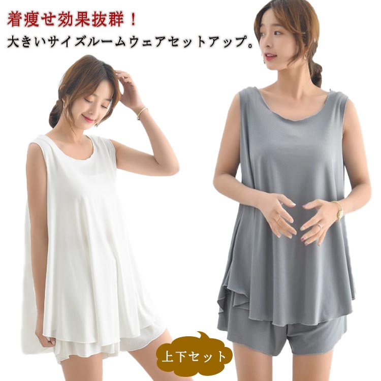 上下セット ルームウエア 部屋着 夏 タンクトップ 滑らか 大きいサイズ とろみ パジャマ 2点セット ショートパンツ 薄め レディース 涼しい Aライン 可愛い 入院 女性用 セットアップ