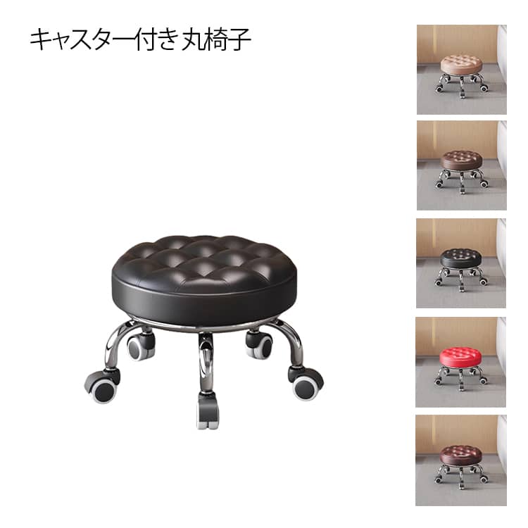 キャスター付き スツール 回転椅子 ラウンドスツール インテリア 低い椅子 ミニチェア 丸椅子 ロースツール 家庭用 子供用 回転チェア 玄関 レザー 金属 省スペース 便利グッズ