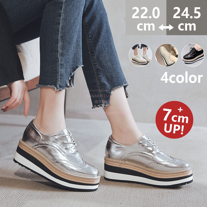 厚底スニーカー レディース 厚底 ローファー ヒールスニーカー インヒール オックスフォードシューズ ブローグシューズ レースアップシューズ カジュアル お出かけ 普 美脚効果